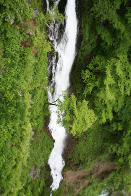 一気に落ちていく迫力が感じられる。エレベーターで滝壷付近まで下りて見ると、たくさんの白糸も見