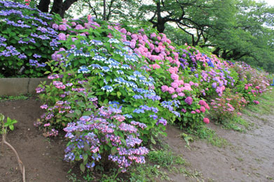 大である。同時に紫陽花の花も楽しむことが出来る。水産試験場跡地では、金魚飼育の展示や水