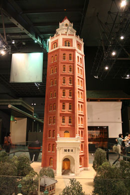 きな展示物を上から見下ろすことが出来、中村座、浅野新聞社などの建物がよく見える。5階には