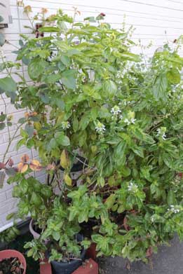 葉っぱは元気ですが、今年は実の付きが少ないようです。まだ現時点でも緑のままとなっていて、色付くまでにはもうしばらくかかりそうです。こちらも来月くらいには収穫が出来そうです。 【バジル】