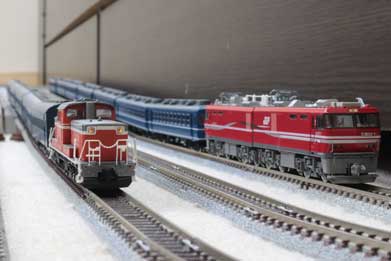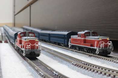 DD511962年に登場した、ディーゼル機関車である。1978年までに649両が製造された。北海道、本州、九州の非電化区間を中心に、貨物列車、ブルートレインを含めた客車など、幅広く活躍している。塗装はオレンジ色に、白い帯となっている。 |