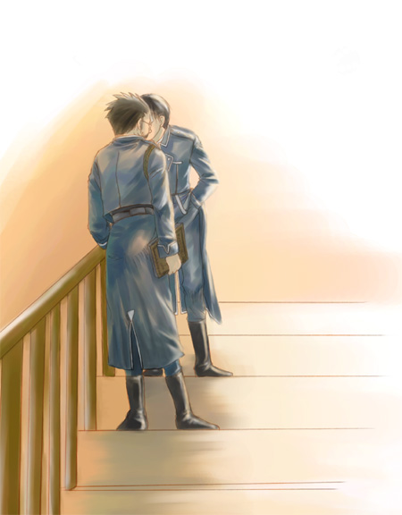 仕事もしないで階段でちゅー…。まさにヒュロイの王道を行く絵を
