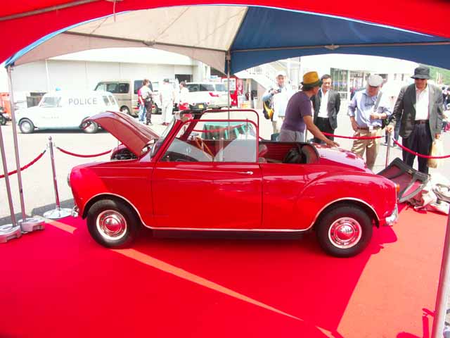 今回イギリスから来ていたミニのプロトタイプ。 このイベントのためだけに持ってきたらしい。 貴重な一台で途中走らせました。 晴れて良かったねぇ。 |