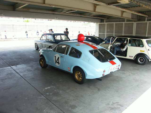 ヒストリックカーレースのエントリには画像のエランとか ロータスセブン、ジネッタ、ルノーアルピーヌ、コルティナ とかも走っていました。 |