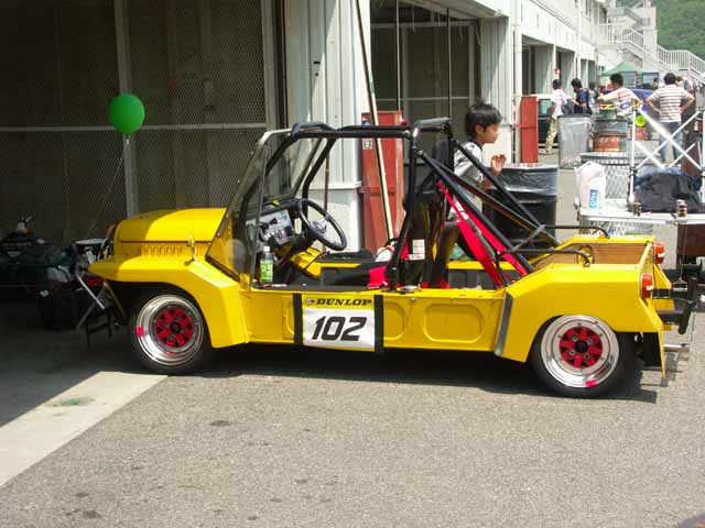 これもお仲間のモ−クです。 スポーツ走行に出ていました。 このままオープンで走ってた。 これ以外にミニジャッQっていう0-400mレースの時に スタート地点にサーキットクイーン運んで行ってたのは 緑のモークだった・ |