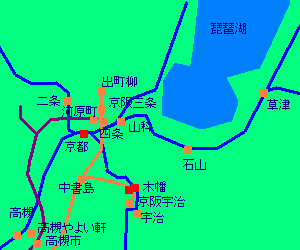 高槻からは新快速で1駅10分。新快速は早くて便利!