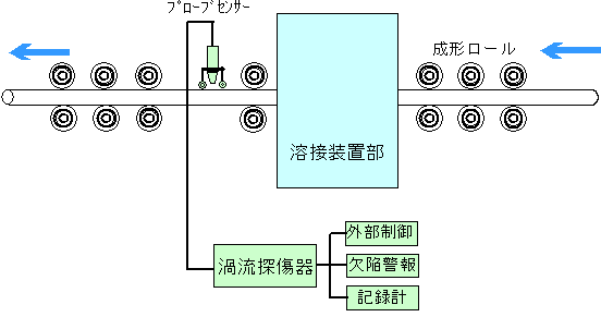 【プローブ式探傷器による溶接管造管ラインの溶接部検査装置】