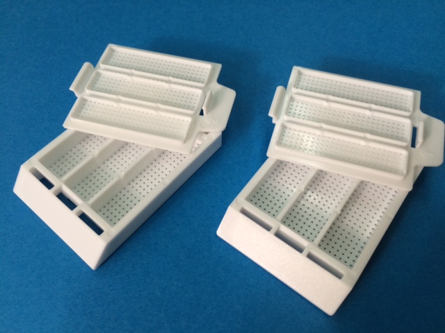 ■溶液の入出孔が0.4mm角と小さく、検体のもれを防ぎます。 ■分画は縦型です。 ■長細いバイオプシー検体に最適です。 ■肉厚で頑丈に出来ています。 ■お求めやすい250個入があります。 ■蓋は前方開きタイプです。 ■他メーカーの包埋皿が使用出来ます。(※一部メーカー除く)