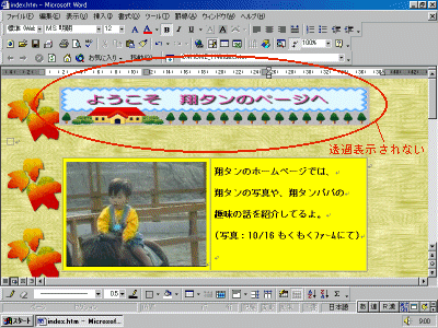 【トラブル内容】 Word 2000でWebページの作成を行っていま すが、透過GIFに設定した部分がグレー 色で表示され、透過表示されません。 ちなみにブラウザ(IE5)ではちゃんと 透過で表示されます。 以前Word 97で作成していたころはこんな ことなかったので気になってしまいます。 現在、他のバージョンのofficeは共存させ ていません。 ブラウザもIE5のみインストールしてい ます。 【処置】 1.ツール−オプション−表示、等で関係 しそうな設定を捜すがわからず。 2.office 2000をアンインストール後、再インストールしたが、変化なし。 |