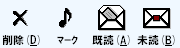 マークが付いているアイテムを選択してマークボタンをクリックするとマークが消えます。