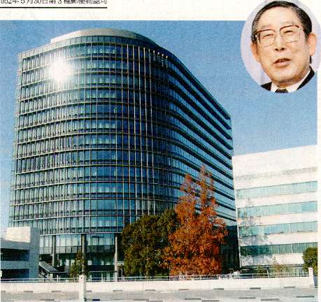 トヨタ自動車の本社=愛知県豊田市、円内はトヨタの奥田碩会長