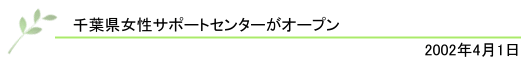 2002年5月9日、千葉県による「女性サポートセンターオープン記念フォーラム」が行われました。 千葉県は4月より「配偶者からの暴力の防止及び被害者の保護に関する法律(DV防止法) ここのセンターの業務は以下のとおりです。