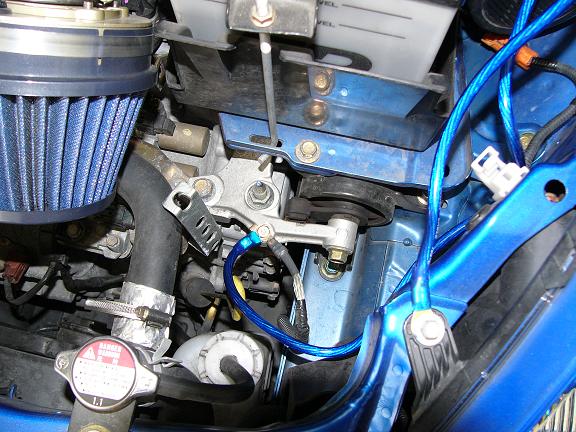 | エンジンブロックとシリンダヘッドから出ている純正アースに取り付けました。 エンジンブロックは1カ所使用されていないネジ穴(M8)があり、ここにステンネジM8x20をスプリングと平ワッシャで取り付けました。 |