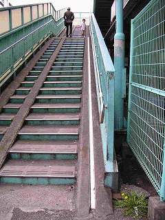 手前の階段の歩道(というか、線路。鉄分たっぷりなので)に気をとられて