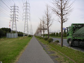 類があるのは、反対の歩道側のみで左側には何もない。(プラントの敷地なんだから当たり前か)