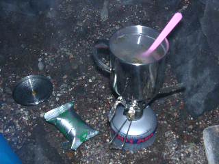 夜食は,暖かいものがよかろうと,小型ストーブを持参していたので,これで湯を沸かし,