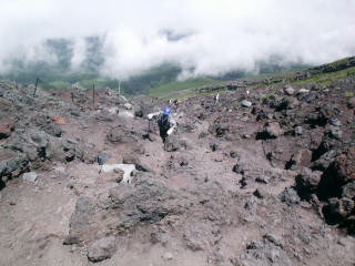 富士登山では,汗をかくペースでの歩行はご法度なのだが,上に雨具等を