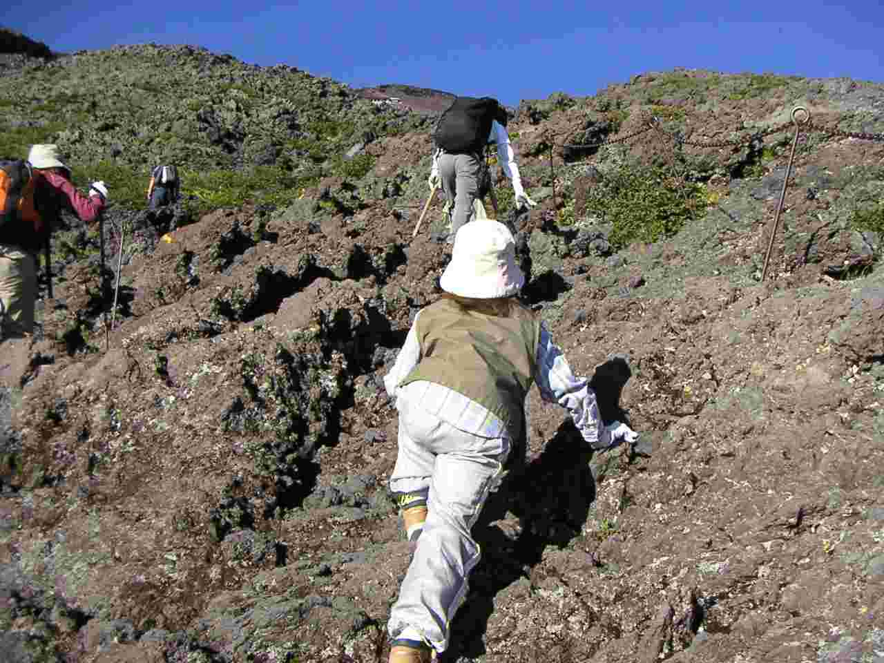 六合目に向かう最初の下り坂を,恒例の「なんで登山で下るんだ!!」の