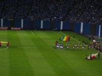試合開始の45分くらい前になって、選手がピッチに登場して練習。