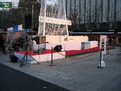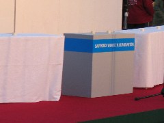 いよいよ点灯式。来てから30分くらいで、日が暮れ、暗くなった。寒い。エレクトーンとサイレンスヴァイオリンで平井堅の「瞳をとじて」の演奏。点灯式に参加する人たちが登場。なんだ、これといって有名人来てないや。知ってるのは、石水氏(石屋製菓社長、北海道フットボール副社長etc)くらいだ。がっかり。