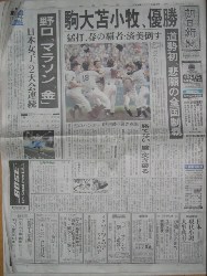 号外付き。記事のほぼ半分が駒大苫小牧関連。記事をよく読めば、実は以下の内容の使い回しなんだが。