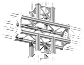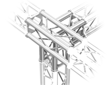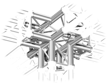 トラスのパーツは大きく分けて、基本となる直線部材の「ストレート」、直角の角を作る「90°コーナー」、様々な角度でトラスを繋ぐ「変形コーナー」、曲線を描く「サークル」、施工の手助けをしたり既存のパーツでは不可能なデザインを実現する「アクセサリ」の5種類に分けられます。