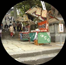 ↑ 映画のセットの一部として昔の出店やノボリが出ていました。