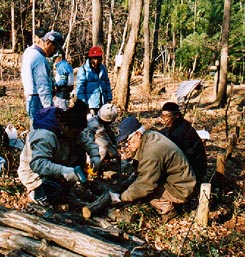その後時間がとれず1回水を掛けたのみ。水のある場所から遠く斜面を水を提げて歩くのは想像していたよりも重労働である。 雑木林の環境ならば放って置いても育つ、そうでなければ自然に生える椎茸はないはず・・・・・・との理由をつけて水かけはやらないことにした。何と意志が弱いと少々反省しながら。他の2ヶ所のものは、乾燥が強く木口に菌糸は見えていない。