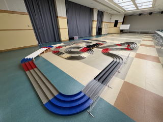 体育室にミニ四駆コースを設置 終日フリー走行 参加費無料 貸出しミニ四駆有り 10時〜14時 フリー走行 走行動画 |