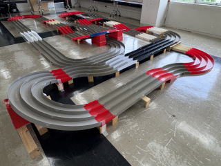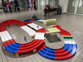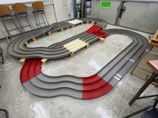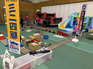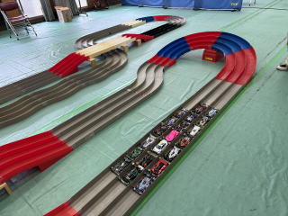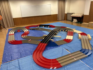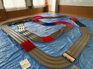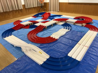 体育室にミニ四駆コースを設置