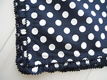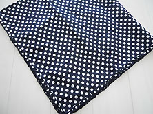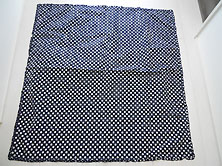 | 2006年春 美品です 綿100% 濃紺に直径1cmの白の水玉柄 綿ブロード素材 100cm×100cm 周囲にピコ刺繍のフリル付き |