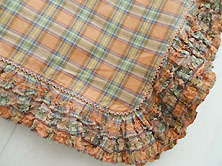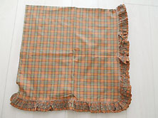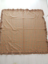 | 2006年夏 美品です 綿100% 薄いオレンジとグリーンの チェック 綿ローン素材 周囲にピコ刺繍と フリルに3段のフリル付き 112cm×112cm |