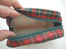 | 内側底に3ミリ程度の 茶色いうすじみが 7〜8個あります。 保管時に浮き出した感じです。 赤チェックに黒でテリア刺繍と グリーンでロゴ刺繍 上ファスナー開き 綿素材かと思います。 縦10cm 横13cm マチ5cm |