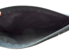 | 型崩れがあります。 黒3ミリギンガムの キルティング素材 上ファスナー開き ロゴパッチつき 縦10cm 横14cm マチ4cm |