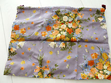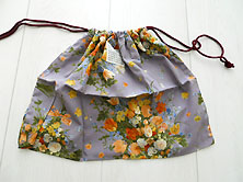 美品です パープルにブーケ柄 綿ブロード素材 ロゴパッチ1個付き 口部分にパープルの綿ロープが通って巾着に絞れます。 縦25cm 横32cm |