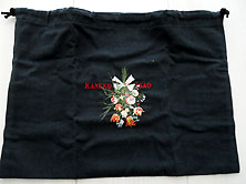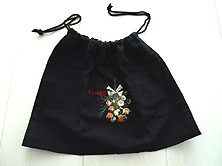商品番号47B−0365 KI ノベルティ黒ブーケ刺繍 巾着 売約済み ¥550(税込み) (税抜き価格¥500 値上げのご注文は 税抜き価格に100円単位で 上乗せしてお申し込みください) |