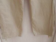 2011年 サイズM 内側タグの端が斜めに 2カ所カットされています。 他は目立つ難なくきれいです。 綿100% ベージュ 綿かつらぎ 軽く柔らかな素材です。 総丈89cm 股上25cm 股下66cm W72cm ヒップ幅48cm 腿幅28cm 裾幅24cm (股上は縫い目が十字に 交差する部分から上端まで、 股下は縫い目が十字に 交差する部分から裾まで) |