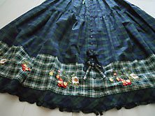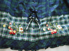 | 2024年 美品です クリーニング済み 綿100% グリーンとブルーの タータンチェック 綿ブロード素材 丈87cm ウエストに2段の総ゴム入り ピコ刺繍のひもリボンが通って 前で結びます。 ゴムを伸ばさない状態で W62cm〜88cm位 前ボタン全開 ウエスト下で2回切り替え 切り替え部分にピコ刺繍つき 裾は白とグリーン、ブルーの タータンチェックに切り替えて 裾にぐるりと白いお花と チェリーの刺繍入り チェックの切り替え部分に ピコ刺繍つき 裾にピコ刺繍のフリル付き |