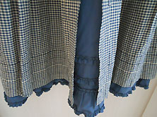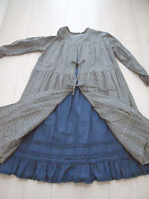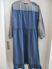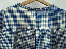 | 2023年 1回短時間着用の美品です 綿100% くすみブルー 3ミリギンガム 綿ブロード素材 裏地はブルー無地の 綿ブロード素材です。 前後とも胸の上から裾まで 裏地がついています。 (一番下段をご参照ください) 丈111cm 身幅56cm 衿周りにピコフリル えりもとにブルーの サテンリボン付き 前は胸の上で切り替えて 切り替えまでくるみボタンと ループ留めのプルオーバー 長袖 二の腕幅22cm 腕のあたりで切り替えて 切り替え下にギャザー入り 袖口にゴムシャーリング 胸の下から2回切り替え 切り替え下にギャザー入りの Aライン 後ろは1段目の切り替え下から 開いていて2カ所の ひもリボンを結び留めます。 裏地は裾で切り替えて 切り替え部分と裾のフリルに ピコフリル付き 表地の裾から裏地のフリルが 5〜6cmのぞきます。 (左下写真) |