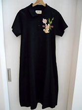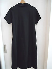 | 2025年 試着のみの未使用品です 綿100% 黒 少し厚手のTシャツ素材 リブ部分 綿50% ポリエステル50% ポロシャツのようなリブの衿 丈111cm 身幅47cm 前3個ボタン開きのプルオーバー 半袖 二の腕幅19.5cm 袖口幅17.5cm ストンとした裾広がりの Aライン風 ポロシャツワンピースです。 |