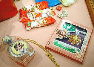16 クリスタルケース(これとは色違いバージョン) 2代目時代子供用カバン・手前はお面 |