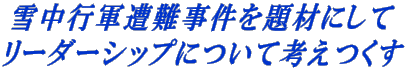 雪中行軍遭難事件の事例を通して、受講者自らが組織のあり方を考え、リーダーシップとリスクマネジメントについて学ぶとともに、あすからの業務に活かすことを目的とします。