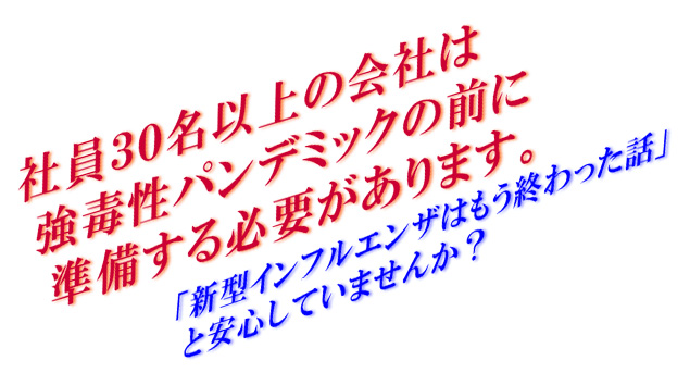 しっかり準備をして、パンデミック(爆発的感染拡大)を迎えた企業と、無策のままその時を迎えた企業では、その被害は格段の違いになります。