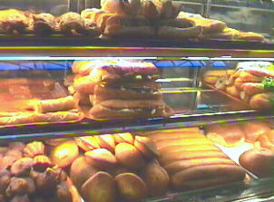 タヒチのパンといったらバケット(フランスパン)という印象ですが、こんなにいろいろなパンがありました。左はコッペパン、ふあふあでほんのり甘くておいしいです。右は「フィリフィリ」という8の字ににひねったドーナッツで家庭でもオヤツとしてよく作られるようです。 |