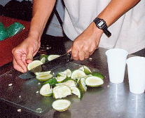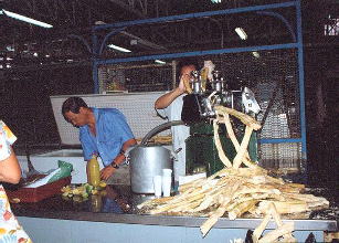 数年前、ムシとモメあって意地でも飲んだ思い出の一品(?) 専用機械でジャカジャカ搾って、 一杯100cfp(120円くらい) |