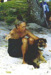 ダイビング雑誌にも紹介されていた?ボラボラの「行水犬」と子犬を抱っこするチビちゃん。