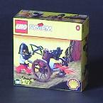 を購入しました。先に入手していたグループとの間で、パッケージの一部に変更点がありました。 主な違いは、1.「SYSTEM」の文字が消えたこと。2.「LEGO」のロゴが新しくなったこと。3.パッケージ底面の記述が変わったこと(下写真)。「1998,2000 LEGO Groupe.」の文字も見えます。4.そのパッケージ底面にあった「危険。小さいパーツがあるので、3歳以下の子に与えないように」という主旨の注が正面下の方に移動したこと(上の写真参照)。5.パーツ数が表示されたこと。−などです。 「1.」は、1999年を最後に「SYSTEM」というロゴ、呼称が廃止されたため。「4.」は米国式の表示のようです。バーコードも全く別のものが振られています。 | |
