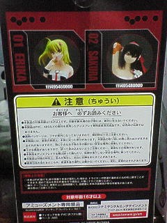 | HEADLINE 2007/10/22(Monday) 2007年10月22日(月曜日) 更新したコンテンツの、ご案内 IIDX ID 登録公開ページ : 1名様、IIDX ID、新規登録、公開しました。 HIRO$さんより、IIDX IDの登録公開申請をいただきましたので、公開しました〜 それと前回紹介したYUSAKUさんの情報に、一部誤りがありました。 ここで訂正の報告とともに、お詫びいたします。 ★ CD化初収録楽曲含むBEMANIシリーズの10年を振り返る5枚組ベストアルバム「BEMANI BEST for the 10th anniversary」登場! 2007年は、BEMANI10周年ということで、今までにリリースされてきたBEMANIシリーズの楽曲を詰め込んだ5枚組音楽CDセットが、発売決定です。 ■ 『beatmania IIDX Figure Collection フィギュアコレクション Vol.1』 先日の事、巷のアミューズメント施設に登場し始めたということで、見に行ってみたら。 UFOキャッチャーの中に、ありました! 2種類とも、ゲットでした〜 (お金、結構つかっちゃったケド) 箱の側面にもキャラクターイラスト入りで、さすが、プライズ限定モノ。 限定モノには、誘惑に弱いトコロがありますです。 (管理人) BEAT SQUARE TOPに、もどる |