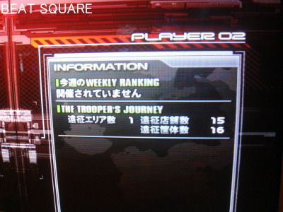 | HEADLINE 2007/12/26(Wednesday) 2007年12月26日(水曜日) 更新したコンテンツの、ご案内 音楽ゲームデータベース : 【AC】beatmaniaIIDX 15 DJ TROOPERS 曲リストまとめページ、更新しました。 データベース、大幅ページ追加と、更新を行いました。 今日も、画像を紹介します。 いろいろと撮り貯めていたものもありましたので、一挙公開です。 (左上から) 通常筐体 近影 通常筐体 上の看板 タペストリー 新筐体 近影 新筐体 近影 (画面は、液晶でした) 新筐体 足元 (通常筐体と、おなじでした) 稼動開始当初のバージョン情報 オンラインアップデートがあると、こんな表示がモニターにでます 最新バージョン情報 最後に、モニター右上の表示 (タイトル表示のとき)・・・・DISPLAY TYPEが気になる。 (管理人) BEAT SQUARE TOPに、もどる |