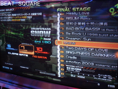 | HEADLINE 2007/12/18(Tuesday) 2007年12月18日(火曜日) beatmaniaIIDX 14 GOLD、スコアアタック企画参加、アリガトウでした! DJ TROOPERSでも、(おそらく?)オリジナルコース対応になるかと思いますので。 そのときは、またサイト主催のスコアアタック企画に、参加してみてくださいね! ■ beatmaniaIIDX 14 GOLD スコアアタック企画、結果発表!